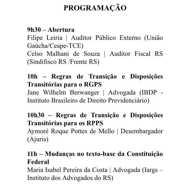 • Programação Workshop Reforma da Previdência