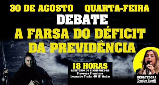 O Fórum em Defesa da Previdência promove, no próximo 30 de agosto, quarta-feira, um debate sobre a Reforma da Previdência. O evento destaca a farsa do déficit da Previdência, os motivos reais do governo para buscar a reforma e a necessária construção da resistência dos trabalhadores.