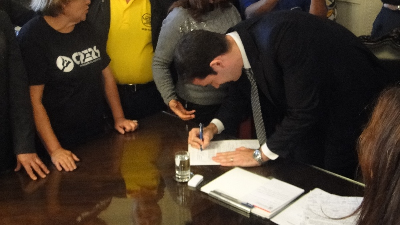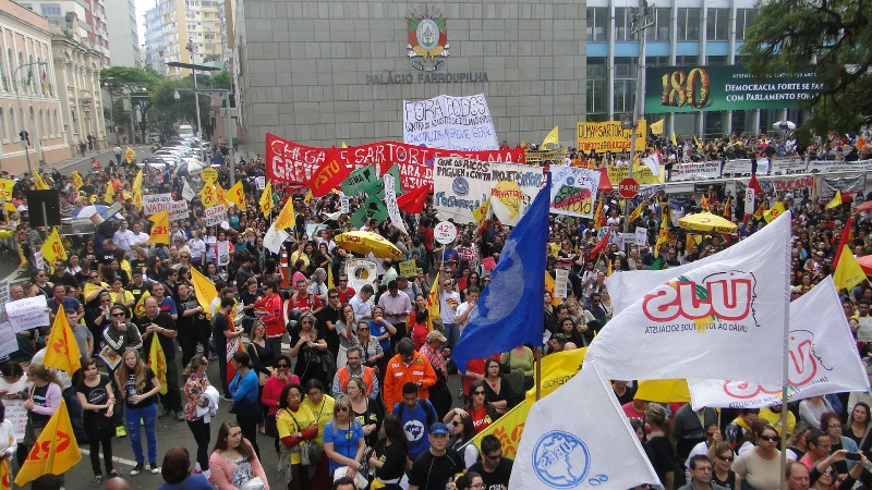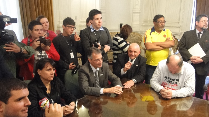 Terminada a Audiência Pública os participantes marcharam para o Palácio Piratini, onde foram recebidos pelo Secretário Chefe da Casa Civil, Márcio Biolchi, a quem entregaram um documento resumo da audiência, assinado por 44 entidades de servidores públicos, solicitando a retirada do projeto do parlamento. O chefe da casa Civil disse que o Governo iria examinar o pedido de retirada da matéria. Enquanto isso milhares de servidores manifestavam-se em frente ao Palácio denunciando o parcelamento dos salários e pedindo a mudança de posicionamento do Governo.