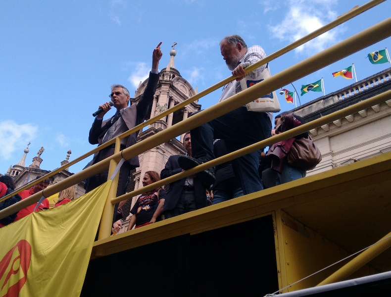 Várias entidades apresentaram seus argumentos contra o projeto que não prevê qualquer investimento público e nenhum reajuste aos servidores pelos próximos quatro anos. O presidente do CEAPE-Sindicato, Josué Martins, apresentou aos presentes a análise do PLC 206/2015 efetuada em nome da Entidade pela Comissão de Auditores Públicos Externos composta por Harti Nadir Schreiner (Coordenadora), Carlos Eduardo dos S. Fleck, Fábio Juliano de Oliveira, Luis Fernando Alcoba de Freitas e Rodrigo Vargas Laureano sobre o projeto do Executivo.