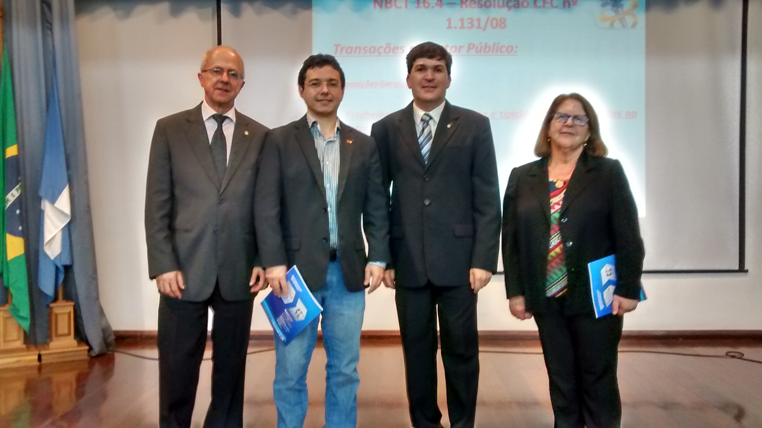 Desenvolvimento Profissional do CRCRS; Leonardo Jorge Victor Nascente Ferreira, Auditor Público do TCE; Alexandre Quintana, integrante da Comissão de Estudos de Contabilidade Aplicada ao Setor Público do CRCRS; Lair Coimbra Resende, Delegada Regional do CRCRS em Pelotas.