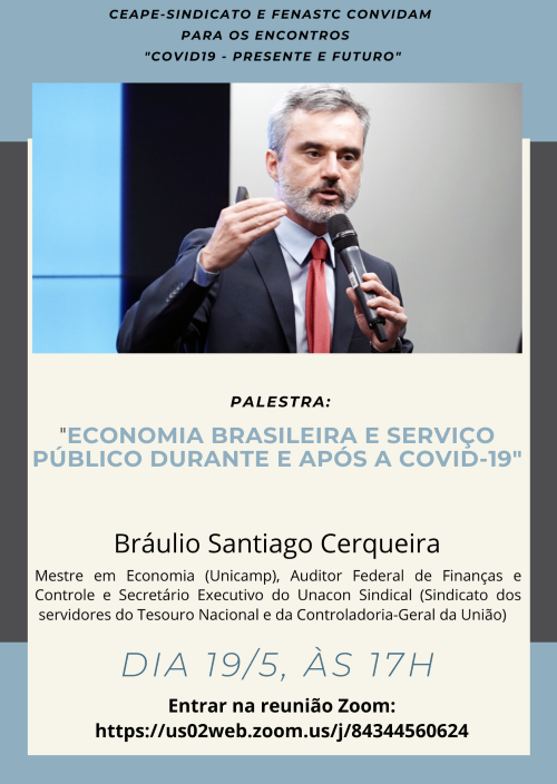 O palestrante será Bráulio Santiago Cerqueira - Mestre em economia (UNICAMP), Auditor Federal de Finanças e Controle e Secretário Executivo do UNACON Sindical (sindicato que representa servidores do Tesouro Nacional e da Controladoria-Geral da União).