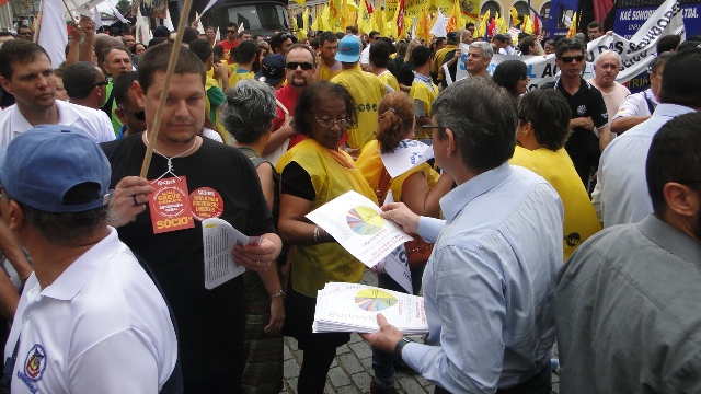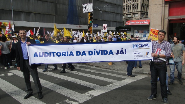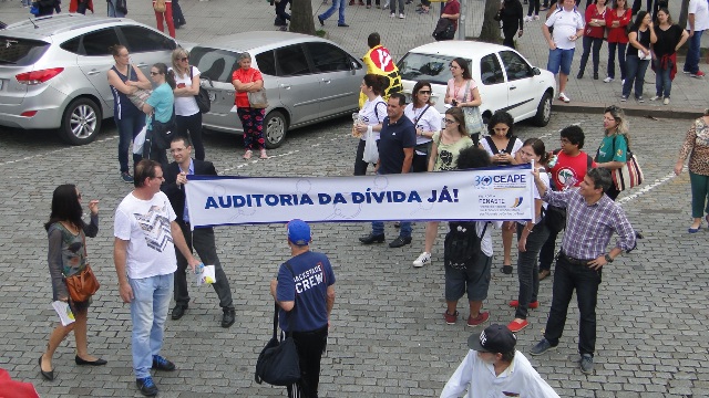 O presidente CEAPE-Sindicato, Josué Martins, falando como membro da coordenação do Movimento, apresentou duas contribuições técnicas que a entidade trouxe para o movimento dos servidores e que poderão dar sustentação ao debate que é essencialmente político. Em primeiro lugar, a discussão sobre a dívida pública estadual e, para isso, confeccionou uma cartilha que foi distribuída aos manifestantes, mostrando de onde surgiu a dívida do Estado e, principalmente, que ela já foi paga. "A União diz que devemos R$ 47,1 bilhões. Mas, na verdade é a União que, em 1º de maio, nos devia R$ 5,5 bilhões", garante Josué.