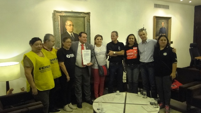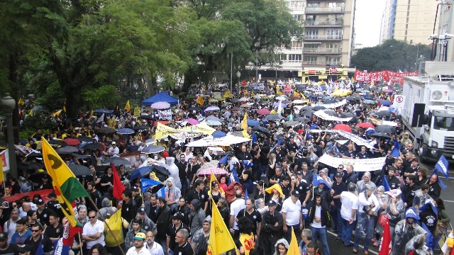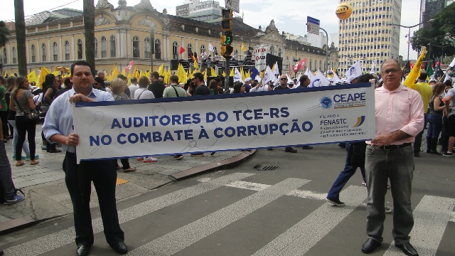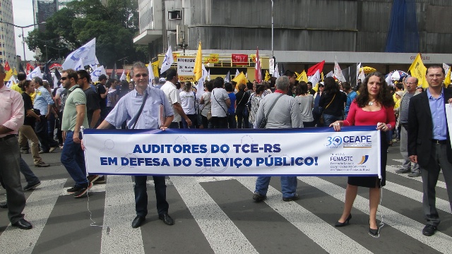 O CEAPE-Sindicato participou nesta terça-feira (18/8) da Assembleia do Movimento Unificado dos Servidores Públicos que reuniu todas as categorias dos servidores do estado. Os servidores protestam contra a política do governo José Ivo Sartori para enfrentar a crise financeira no Rio Grande do Sul (especialmente, o desmonte dos serviços públicos e o parcelamento de salários). A Brigada Militar calcula que mais de 21 mil servidores ocuparam o Largo Glênio Peres e o entorno da Prefeitura Municipal e Borges de Medeiros, até a Rua dos Andradas. A Coordenação do Movimento estimou 50mil pessoas no Ato. Após as manifestações das entidades os servidores seguiram em caminhada até a Assembleia Legislativa, onde entregaram um documento com a pauta de reivindicações ao primeiro vice-presidente, Dep. Ronaldo Santini.