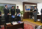 O presidente da Fenastc, Amauri Perusso, deu as boas-vindas aos novos integrantes do TCE/RS e entregou o último exemplar da Revista Achados de Auditoria, lançado no último mês. Ao novo auditor, também o convidou a conhecer o CEAPE, assim como se integrar ao seu quadro associativo.