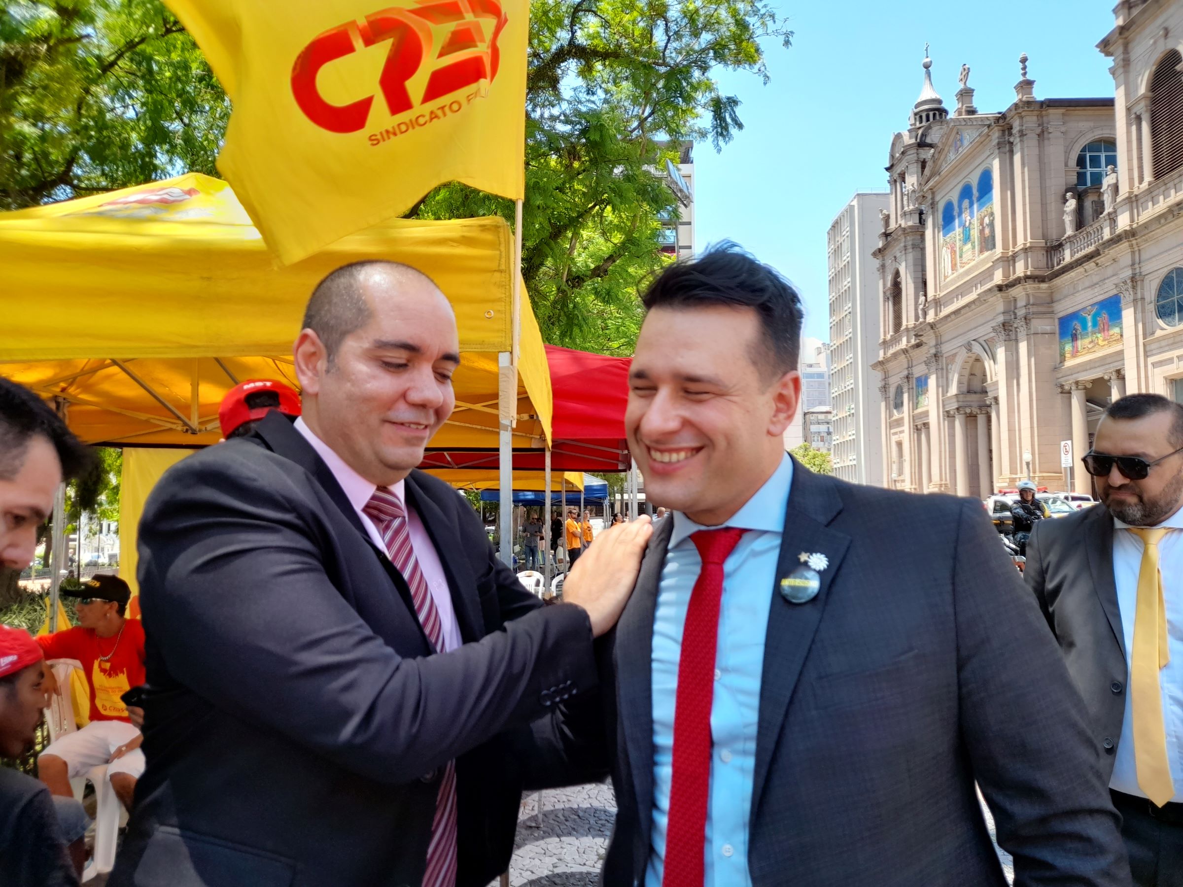 Bancada Negra - Um cortejo popular, com música e manifestações culturais, marcou a entrada na ALRS dos novos deputados que formam a primeira bancada negra do RS. Laura Sito (PT), Bruna Rodrigues (PCdoB) e Matheus Gomes (PSol) foram acompanhados por representantes de movimentos sociais, sindicatos de trabalhadores, estudantes e representantes do movimento afro até a entrada da Casa