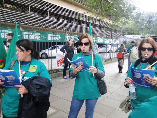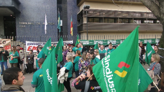 Os servidores do judiciário estão em campanha salarial e em greve desde o dia 19/06. Na pauta: 15% de reposição salarial e plano de carreira definido a partir de uma comissão paritária com a participação de representantes dos servidores, entre outras reivindicações.