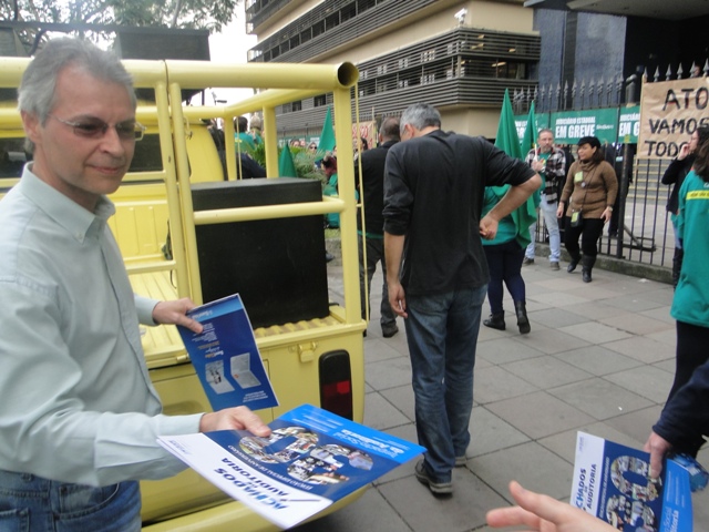 O Ceape, representado pelo seu presidente, Josué Martins, esteve presente no ato promovido pelo Sindjus-RS em frente ao prédio do TJ/RS na Borges de Medeiros e, mais uma vez, levou a solidariedade dos nossos associados ao movimento dos Colegas.