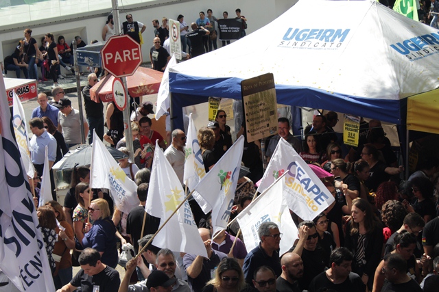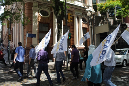 Diretores do CEAPE-Sindicato, associados e servidores do TCE, marcaram presença na Praça da Matriz, no último dia 14/11, para mostrar seu descontentamento com o pacote do Governador Eduardo Leite e com as políticas do governo Bolsonaro.