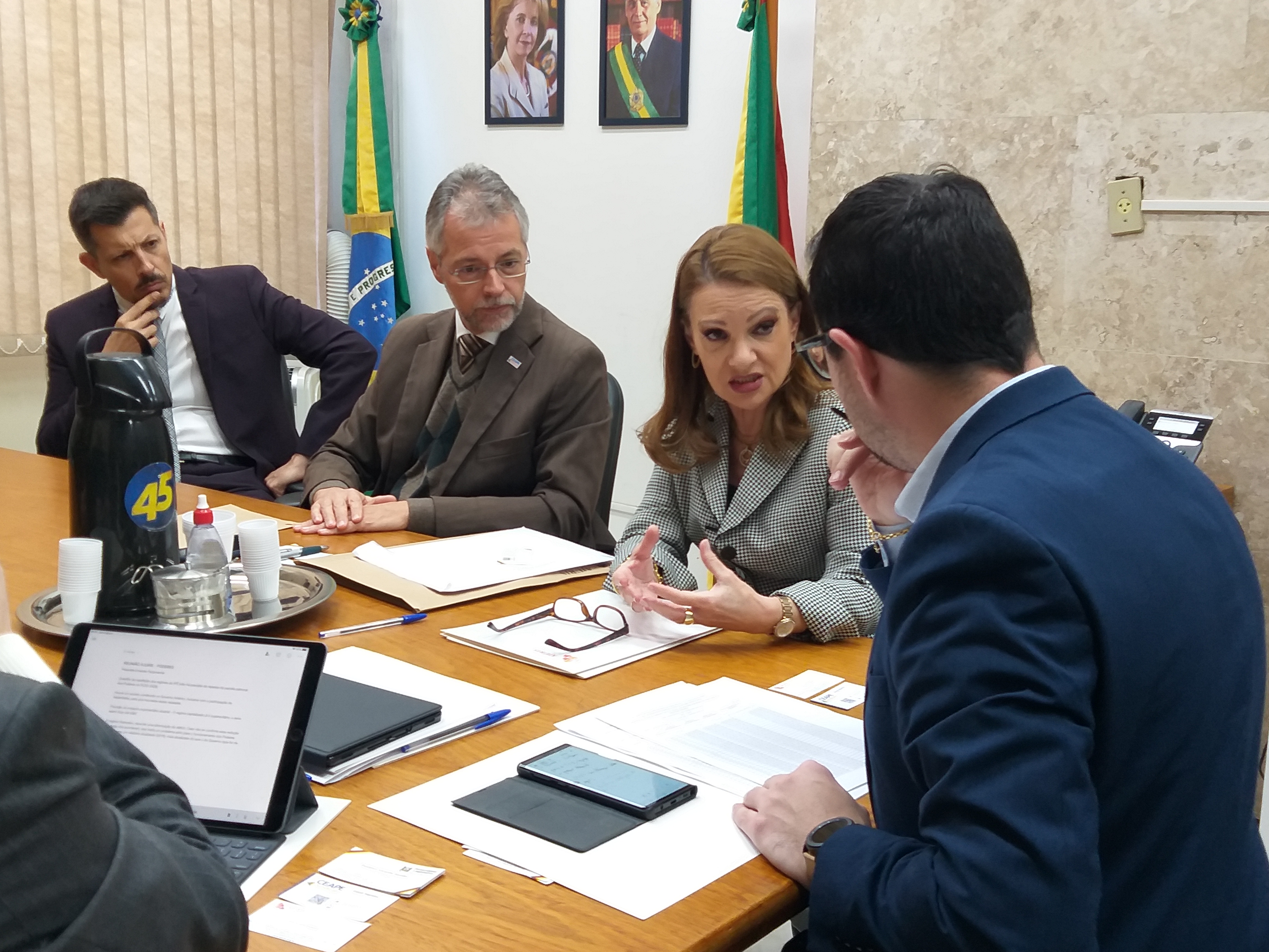 Participaram a presidente da Ajuris, Vera Deboni; o vice-presidente da entidade, Orlando Faccini Neto; a presidente da Associação do Ministério Público, Martha Beltrame; o 2º vice-presidente da Associação das Defensoras e dos Defensores Públicos do RS (Adpergs), Clóvis Bozza Neto e o presidente do Sindicato dos Funcionários Efetivos e Estáveis da Assembleia Legislativa (Sinfeeal), Flávio Dall’Agnol.