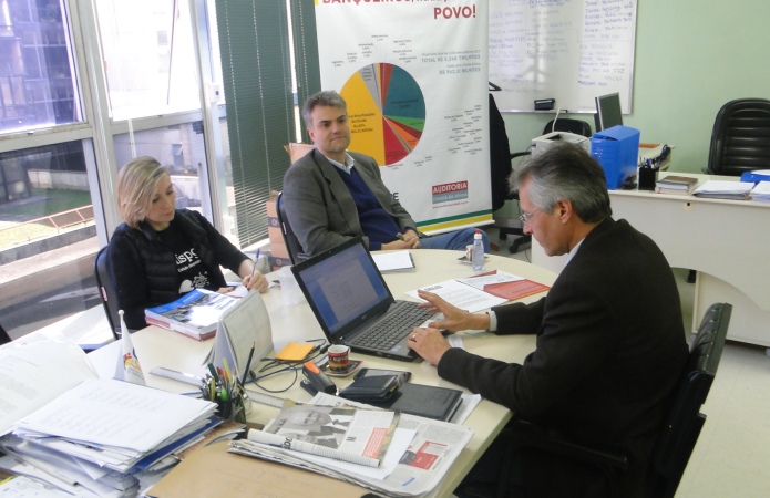 O CEAPE-Sindicato recebeu na manhã de sexta-feira, 9/9, a visita dos diretores do Sindicato dos Servidores da Procuradoria Geral do Estado (Sindispge), Marcelo Radke da Silva - secretário-geral e Bianca Cervo Pagnon - diretora sociocultural. Os diretores parabenizaram a atual diretoria do CEAPE pelo trabalho feito com relação às questões da dívida pública e mostraram disposição em atuar mais efetivamente neste debate. Eles foram recebidos pelo presidente, Josué Martins e pelo vice, Ricardo Freitas, que esclareceram pontos sobre o funcionamento do Núcleo da Auditoria Cidadã da Dívida, do qual a entidade é uma das coordenadoras aqui no RS.