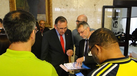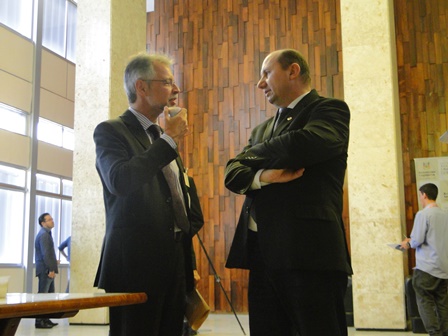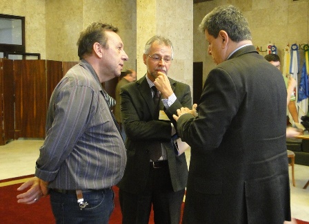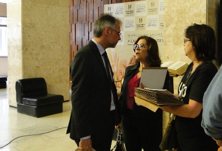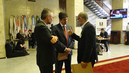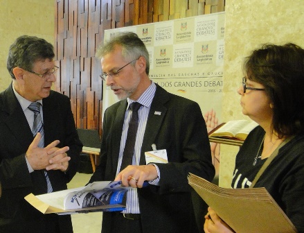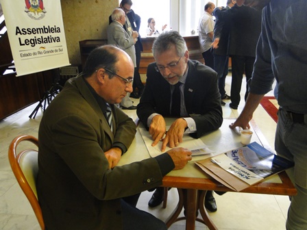 O presidente do CEAPE-Sindicato, Josué Martins, e o vice-presidente da entidade, Ricardo Silva de Freitas, na manhã desta terça-feira (5/12), em uma atividade promovida pelos representantes do Movimento Unificado dos Servidores (MUS) e a União Gaúcha em Defesa da Previdência Social e Pública (UG), entregaram aos deputados estaduais, na Assembleia Legislativa, documento que retrata a contrariedade dos servidores aos Projetos de Reestruturação do IPERGS.