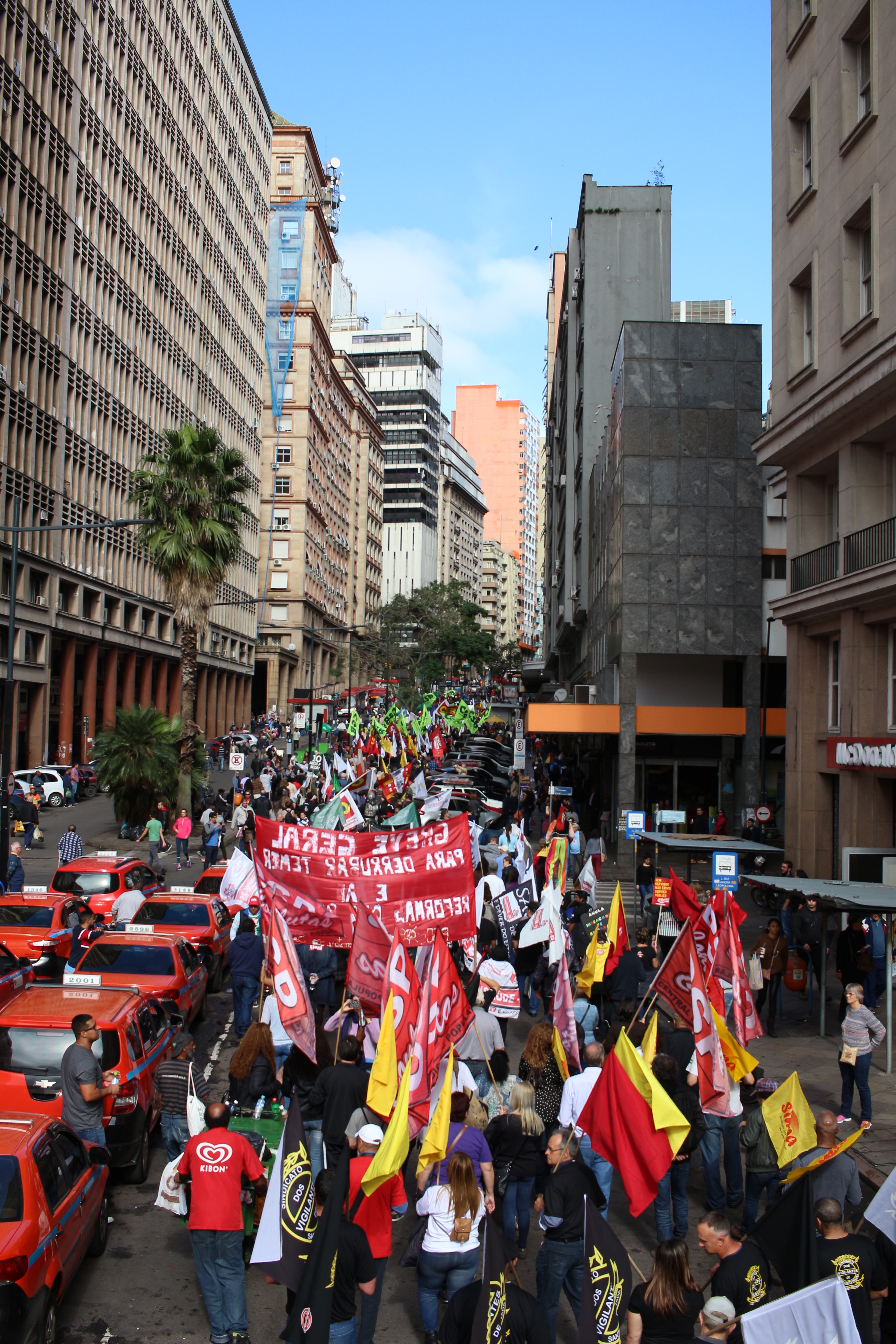 O CEAPE - Sindicato integrou-se à Greve Geral, nesta sexta-feira (30/06). A caminhada iniciou na Esquina Democrática e seguiu até o Palácio Piratini, com a participação de diversas entidades sindicais e movimentos sociais. Durante a parada em frente ao Palácio, criou-se uma comissão de sindicalista para se reunir com representantes do governo do estado a fim de pedir a liberdade do professor e ex-vice-presidente do CPERS, Altemir Cozer, que foi preso durante protesto em frente à garagem da Carris.