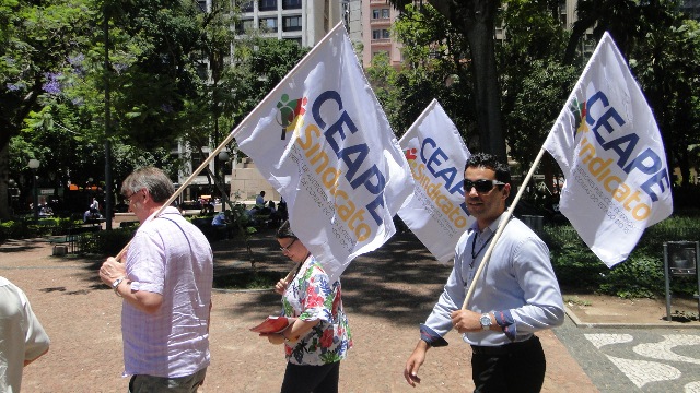 O CEAPE-Sindicato participou nesta terça-feira (13/12) do Ato Unificado do Movimento Unificado dos Servidores Públicos que reuniu todas as categorias dos servidores do estado. Os servidores protestaram contra a política do governo José Ivo Sartori para enfrentar a crise financeira no Rio Grande do Sul (especialmente, o desmonte dos serviços públicos, a extinção de fundações e o parcelamento de salários). Também a PEC do teto de gastos públicos (PEC 55), aprovada no Senado Federal por 53 votos a 16, recebeu repúdio dos manifestantes.