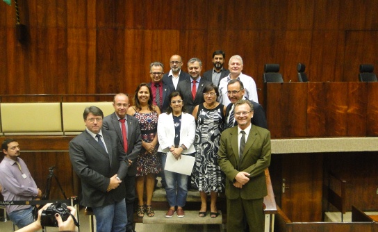 participaram da mesa, Presidente da Federação dos Trabalhadores em Saúde do Rio Grande do Sul, Milton Kempfer; vice-presidente do Afocefe Sindicato dos Técnicos Tributários do Rio Grande do Sul, Gilberto Silva; presidente do Cpers Sindicato, Helenir Aguiar; presidente do Sindicato dos Empregados em Empresas de Assessoramento, Perícias, Informações e Pesquisas e de Fundações Estaduais do Rio Grande do Sul (SEMAPI) – Maria Helena Oliveira; diretor do Ugeirm Sindicato, Pablo Mesquita. O deputado Luiz Fernando Mainardi também se manifestou por meio de aparte.