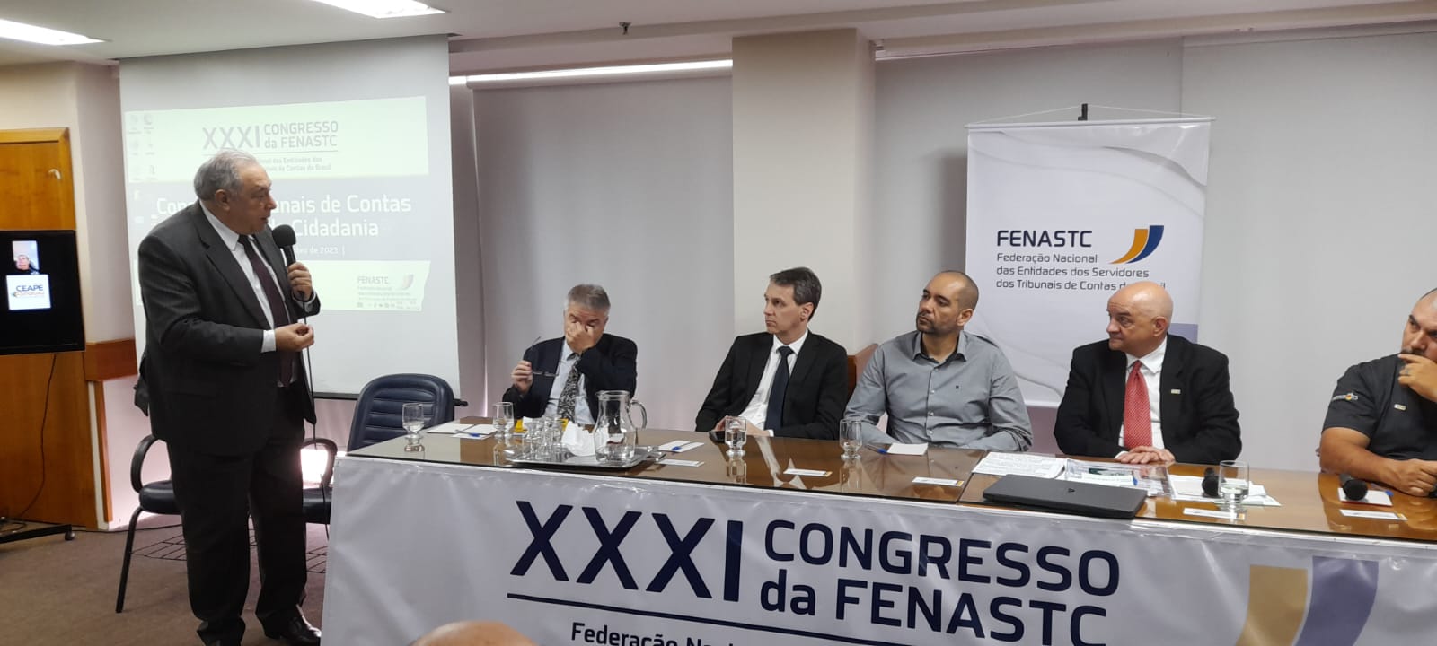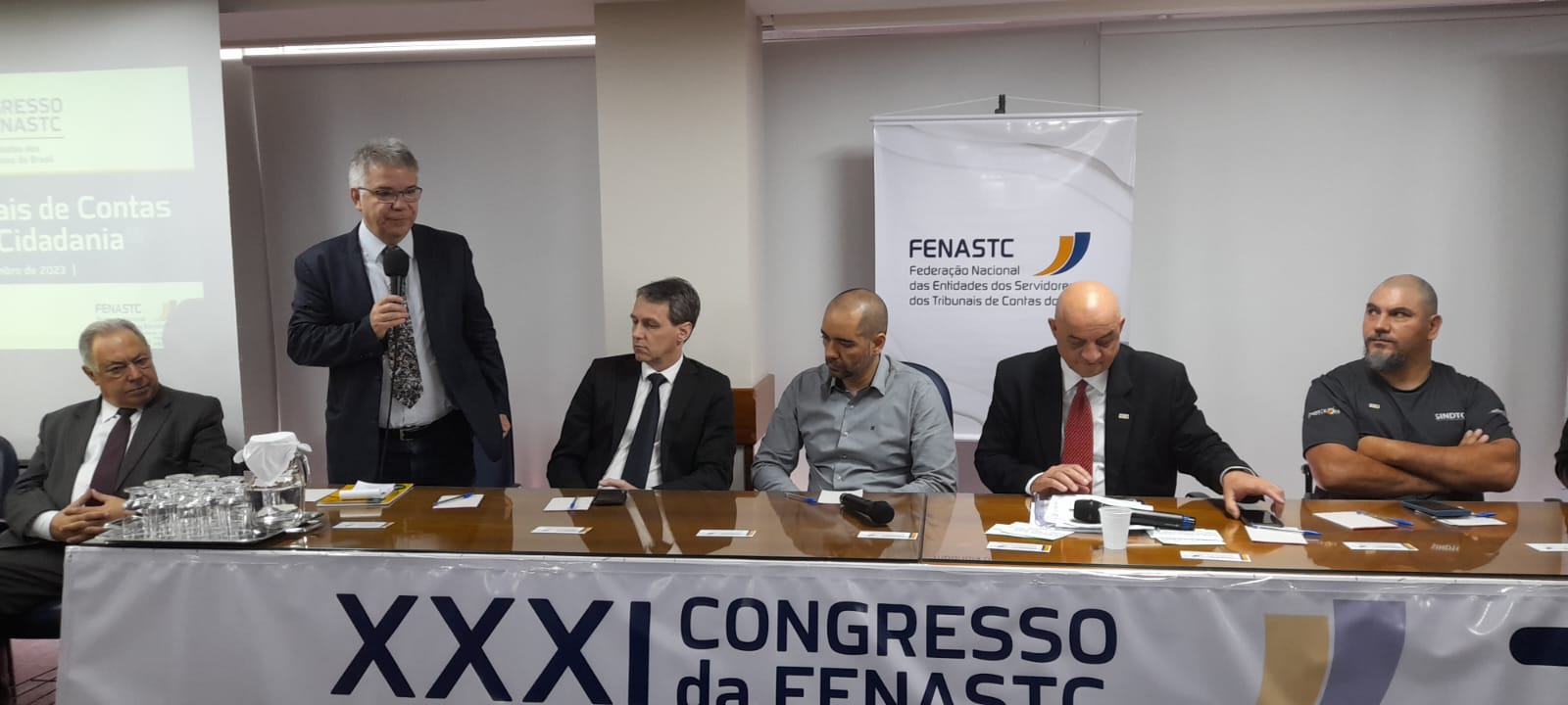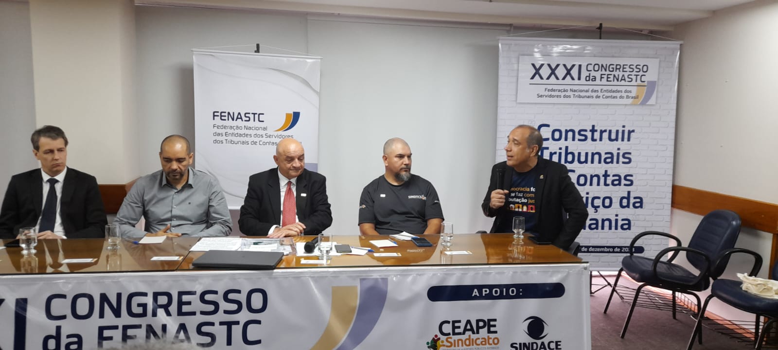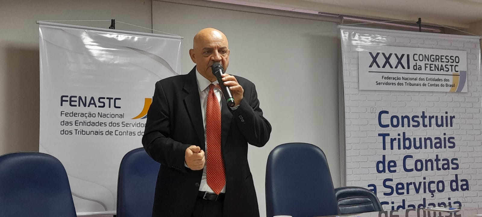 Reconstrução do Movimento Sindical - O presidente da Fenastc, Amauri Perusso, em seu discurso, alertou para o momento especial que o país vive, onde a democracia sobreviveu, depois de ameaçada e agredida e, a partir de agora, é preciso reconstruir o movimento sindical. “Entendemos que é importante retomarmos a unidade de organização da nossa Federação, colocando sob uma só entidade todas as organizações sindicais e associativas dos Tribunais de Contas do Brasil”, afirmou. Para ele, é preciso “reabrir a luta sobre prevenção e combate à corrupção, chamando a sociedade para construir o controle social sobre o Estado, conhecendo e participando do debate público sobre receitas, despesas e qualidade da prestação do Serviço Público”. E elencou uma série de tarefas necessárias à essa reconstrução, entre as quais, quebrar o tabu da austeridade fiscal e do equívoco no entendimento dessa como sinônimo de responsabilidade fiscal; contribuir para a crítica à formação das dívidas públicas que crescem por mecanismos estritamente financeiros e sem contrapartida em investimentos; seguir auditando (com ênfase no controle concomitante) as receitas e despesas públicas e sua adequação aos marcos legais vigentes e avaliar a resultante das políticas desenvolvidas. Por fim, anunciou a aprovação, durante o XXXI Congresso a filiação à ULATOC e UITOC – União Latino-Americana e União Internacional dos Trabalhadores em Controle. “Um País com as dimensões e importância internacional do Brasil precisa estar presente nos debates dos trabalhadores de muitas vozes”, ponderou.