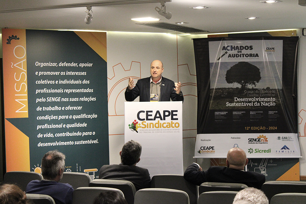 O Congresso prosseguiu à tarde com o engenheiro químico e doutor em Economia, Alessandro Miebach, que falará sobre os desafios da economia gaúcha no contexto das mudanças climáticas. Logo após, os auditores Andrea Mallmann e Anderson Kilpp abordaram o tema do Meio Ambiente no âmbito do TCE-RS, ações no passado e perspectivas. Durante o Congresso foi lançada a 12ª edição da revista Achados de Auditoria, publicação anual do CEAPE-Sindicato, com o tema O Papel do Estado e do Controle Externo no Desenvolvimento Sustentável da Nação.