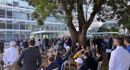 Reunidos na Esplanada, auditores-fiscais da Receita cobraram recomposição orçamentária - (crédito: Fernanda Strickland)