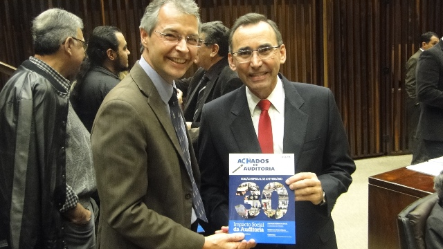 Durante a visita à Assembleia, Josué Martins, aproveitou para entregar aos deputados e autoridades presentes, o último número da revista Achados de Auditoria, publicação do CEAPE/TCE-RS. O material foi bastante elogiado pelos parlamentares e utilizado em discurso pela deputada e ex-professora Zilá Breitenbach que destacou da tribuna o artigo O Papel dos Municípios do Rio Grande Do Sul na Ampliação do Atendimento em Creche às Crianças de 0 a 3 Anos, assinado pelos auditores externos Débora Brondani da Rocha e Hilário Royer.