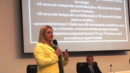 Em sua explanação, Jane Berwanger abordou as mudanças que vêm ocorrendo na aposentadoria dos servidores, a partir de 1988, nas quais, foram sendo retirados benefícios até o quadro atual. Veja o power point completo da palestra clicando aqui.