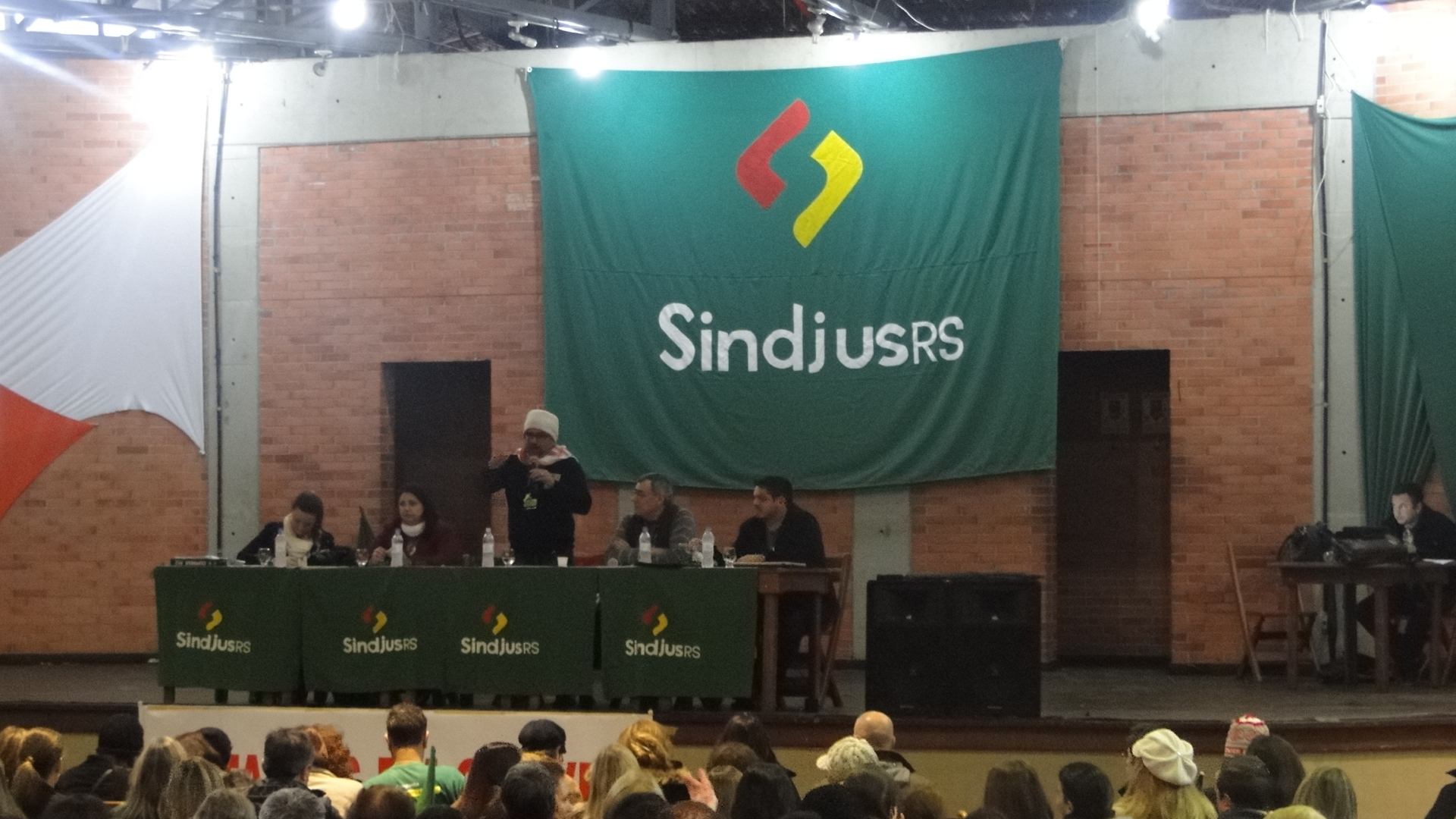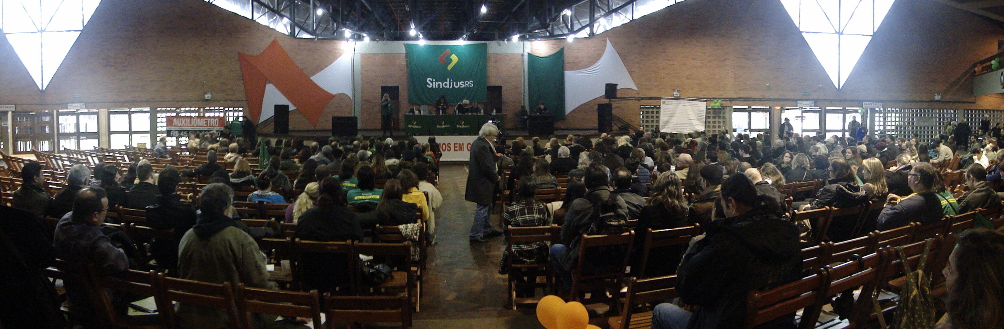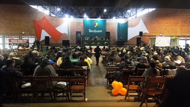Os APEs Josué Martins e Ricardo Silva de Freitas acompanharam o início da Assembleia Geral dos Servidores do Judiciário. Até o momento de nossa participação, durante a fase de discussão da proposta do Presidente do Tribunal de Justiça, Des. José Aquino Flôres de Camargo, o sentimento de todos aqueles que intervieram era de “vitória”, de orgulho de ter mantido o movimento paredista durante 20 dias e de voltar de cabeça erguida.