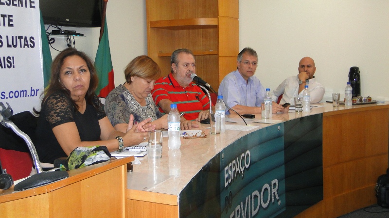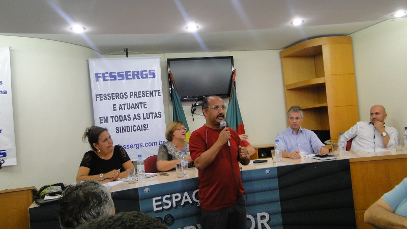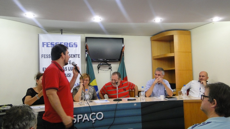 As lideranças do Movimento Unificado dos Servidores Públicos reuniram-se na manhã de segunda-feira (10/8) para definir a mobilização para a Assembleia Unificada que ocorrerá no dia 18/8, a partir das 14h, no Largo Glênio Peres, reunindo todas as categorias dos servidores públicos do estado. Os servidores protestam contra a política do governo Sartori que, além do parcelamento dos salários, está enviando à Assembleia Legislativa um pacote de dez Projetos de Lei, em regime de urgência o que obriga a votação a ocorrer em, no máximo, 30 dias, sem tempo para discutir com a sociedade.