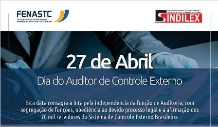 Dia 27 de abril, celebra-se o Dia Nacional do Auditor de Controle Externo!