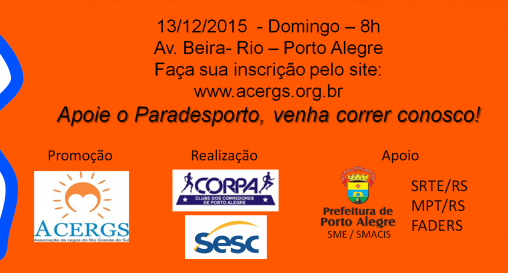 O CEAPE-Sindicato se associou à iniciativa da Associação de Cegos do Rio Grande do Sul (ACERGS) que promove no próximo dia 13 de dezembro, a partir das 8h, uma corrida aberta à população cujo objetivo é arrecadar recursos para a entidade. O evento terá largada e chegada na Avenida Edvaldo Pereira Paiva (Beira-Rio)