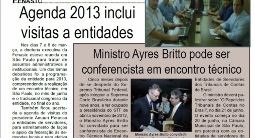 O convite feito ao ministro Ayres Britto para a participação no Encontro Técnico da FENASTC, teve repercurssão no Jornal do Sindicato dos Servidores do Tribunal de Contas de Goiás (Sercon-Go). O