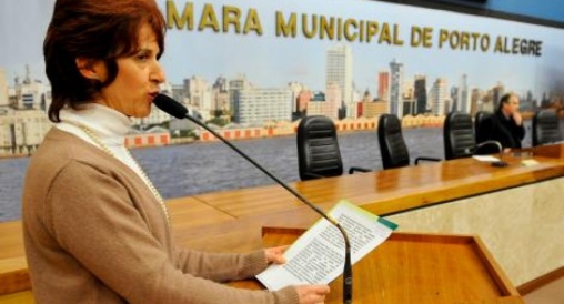 A presidente da Associação dos Servidores do Tribunal de Contas, Lígia Zamin, ao falar em nome da ASTC e do CEAPE, sobre a atual forma de escolha dos conselheiros do Tribunal de Contas, na
