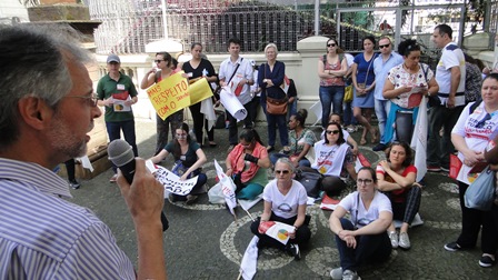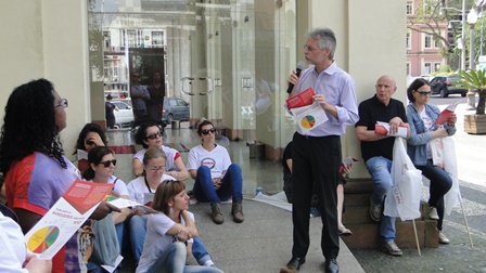 O presidente do CEAPE-Sindicato, Josué Martins, foi o palestrante da Aula Pública promovida pelo Sindicato dos Servidores Públicos do Estado do Rio Grande do Sul (Sindsepe) nesta terça-feira (17/10), 11h30min, na área externa do Teatro São Pedro, na Capital. Ele foi convidado para explicar aos servidores e ao público interessado sobre a origem da Dívida Pública, desde a sua federalização, na década de 90, e as alternativas para mudar esta realidade.