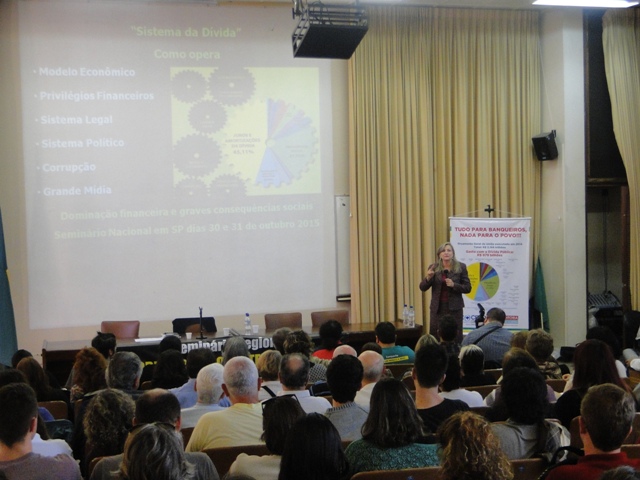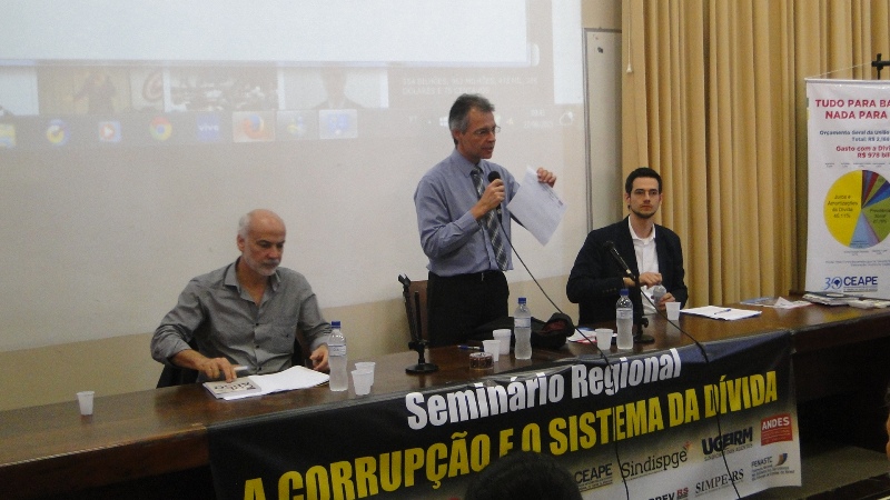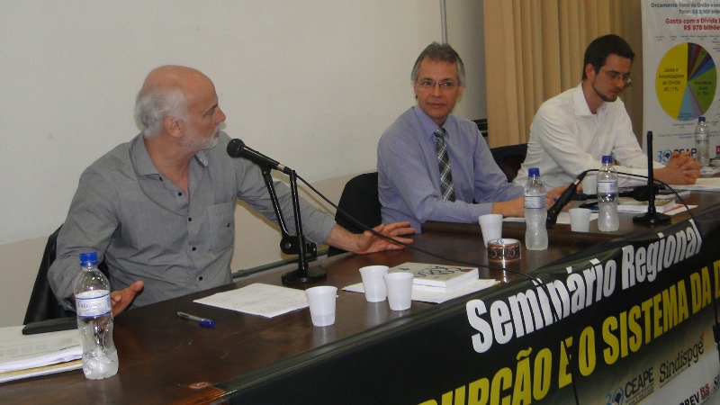 Na parte da manhã, o Seminário abordou como tema "As consequências do Sistema da Dívida sobre as Nações e povos do Mundo, América Latina e Brasil", com os palestrantes Mathias Luce, professor Doutor do Departamento de História da Ufrgs e Nildo Domingos Ouriques, professor Doutor do Departamento de Ciências Econômicas da Universidade Federal de Santa Catarina (UFSC). Primeiro a falar, Mathias Luce procurou elaborar um histórico da dívida brasileira, remetendo a 1825, quando foram emitidos os primeiros títulos na Casa da Moeda inglesa para pagar a independência a Portugal. Além disso, salienta o historiador econômico, "muitas dívidas privadas, ao longo do tempo, foram assumidas pelo erário".