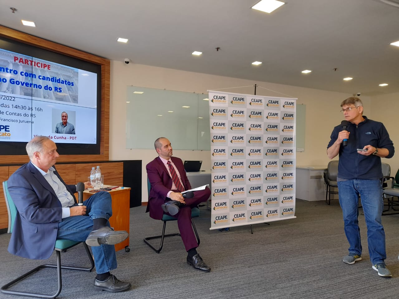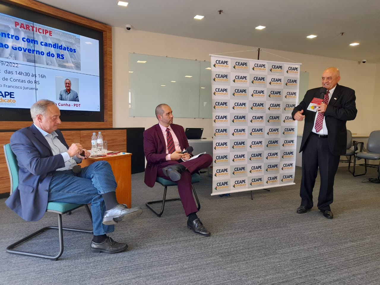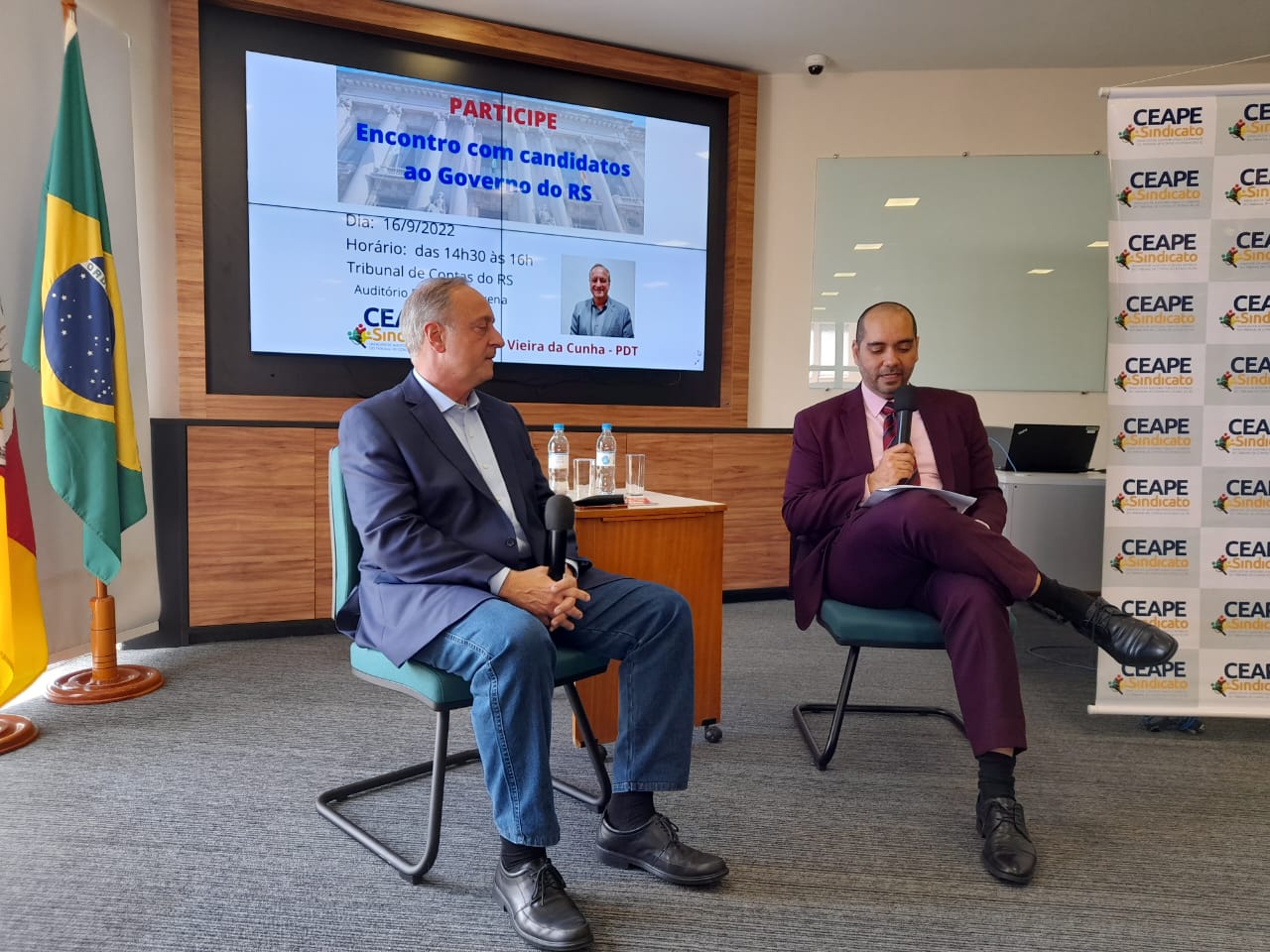 Na última sexta-feira (16/09), o CEAPE-Sindicato realizou mais uma edição do Encontros com Candidatos ao Governo do RS - edição de 2022. Desta vez, na conversa realizada no auditório Francisco Juruena, do TCE-RS, o convidado foi Carlos Eduardo Vieira da Cunha, do PDT, que tratou de temas como Dívida Pública, Plano de Carreira de Estado, Exonerações Fiscais, Saúde, Educação e Previdência Pública, entre outros. Nos Encontros, realizados desde 2002, as perguntas, são previamente enviadas ao candidato, com base no Relatório e Parecer Prévio sobre as Contas do Governador do Estado.